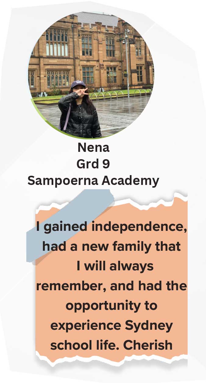 We do collaboration with GIST_International education NSW Australia, OPPA Academy and English Mates as partnership in organizing educational tour. Our programs cover a homestay program, Culture Camp with an integrated language class, school immersion, university visits, and educational excursions for students aged 10 to 18.